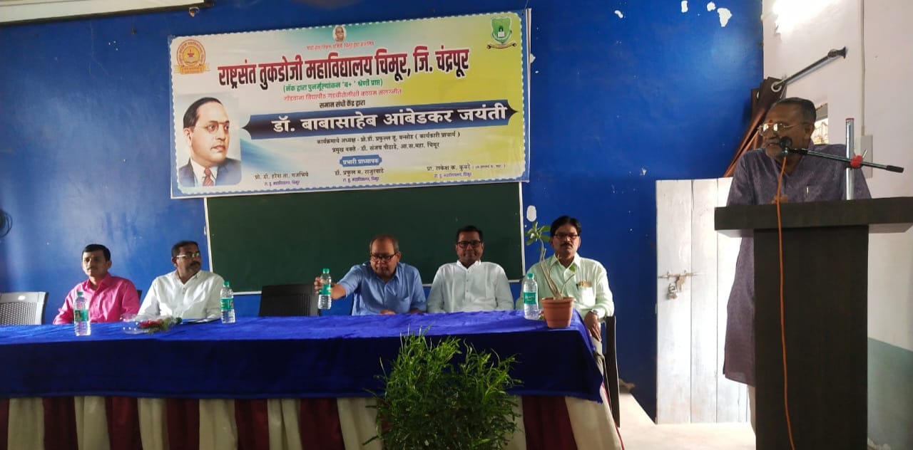 गांधी सेवा शिक्षण समिती चिमूर द्वारा संचालित राष्ट्रसंत तुकडोजी महाविद्यालय चिमूर येथे समान संधी केंद्राच्या वतीने डॉ.बाबासाहेब आंबेडकर यांची जयंती साजरी करण्यात आली.