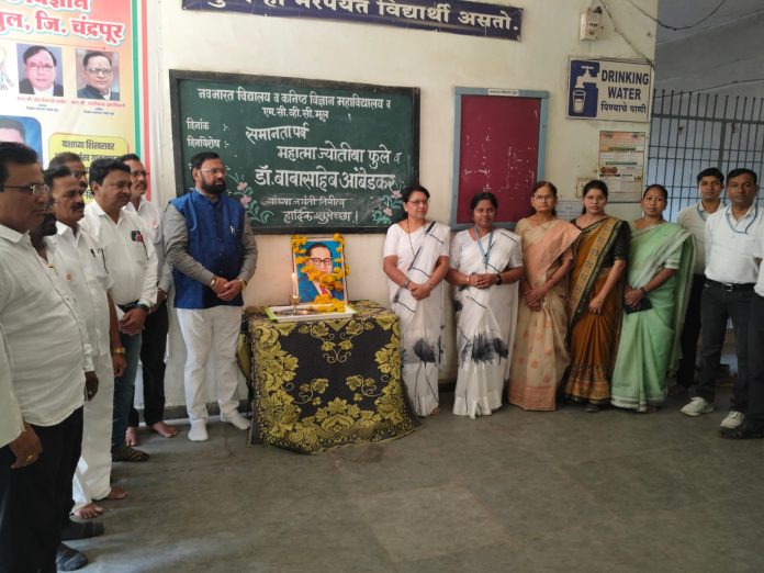The birth anniversary of the ‘Vishwratna’ (Jewel of the World) and great luminary, Dr. Babasaheb Ambedkar, was celebrated at Navbharat Vidyalaya and Junior Science College, Mul, in the presence of Teachers’ MLA Sudhakarrao Adbale.