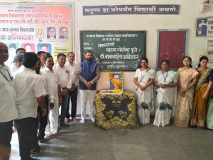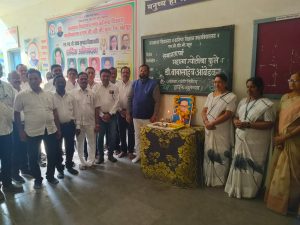 Sudhakarrao Adbale, the Teachers’ MLA for the Nagpur Division, paid homage to the statue of the great luminary by garlanding it. The Headmaster and Principal, Chhatrapati Barsagade, also paid his respects by offering flowers.