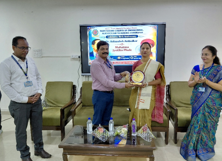 A grand and inspiring program was organized in the IE Hall at the Rajiv Gandhi College of Engineering, Research, and Technology—managed by the Sardar Patel Memorial Society (Trust), Chandrapur—to mark the joint birth anniversary of Bharat Ratna Dr. Babasaheb Ambedkar and the great social reformer, Mahatma Jyotirao Phule.