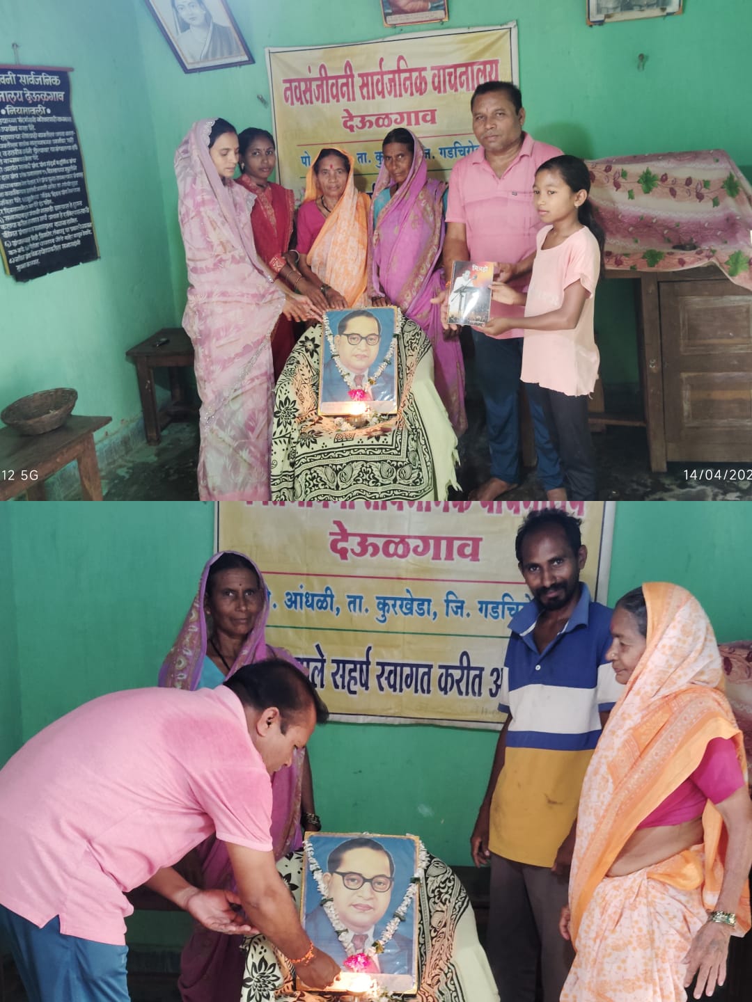 दरवर्षी प्रमाणे या वर्षी सुद्धा नवसंजीवनी सार्वजनिक वाचनालय देऊळगाव येथे विश्वरत्न बोधिसत्व डॉ. बाबासाहेब आंबेडकर यांच्या जयंतीनिमित्त नवसंजीवनी सार्वजनिक वाचनालयाचे अध्यक्ष संतोष ठलाल यांनी बाबासाहेबांच्या प्रतिमेसमोर दीपप्रज्वलन करून अभिवादन केले.