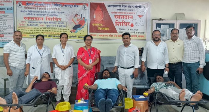 या शिबिरात WCL च्या जवाहरलाल नेहरू वैद्यकीय विभाग आणि आयुष रक्तपेढी, नागपूर यांच्या संयुक्त विद्यमाने प्रादेशिक वैद्यकीय अधिकारी डॉ. शशी शंकर, प्रभारी मुख्य वैद्यकीय अधिकारी डॉ. शैला देवगडे यांच्या सक्षम मार्गदर्शनाखाली WCL कर्मचारी, कंत्राटी कामगार आणि त्यांचे अवलंबित रक्तदान करण्यासाठी मोठ्या संख्येने जमले होते आणि समाजाप्रती त्यांची जबाबदारी पार पाडत आहेत, हे एक चांगले लक्षण आहे.
