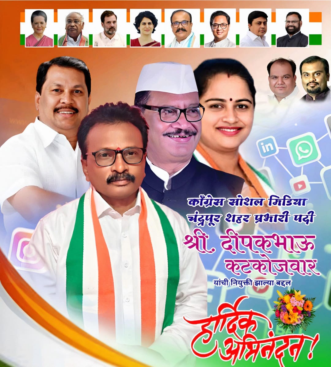 चंद्रपूर शहर जिल्हा काँग्रेस सोशल मीडिया प्रभारी पदी सक्रिय कार्यकर्ते दीपक कटकोजवार यांची नियुक्ती महाराष्ट्र प्रदेश काँग्रेस सोशल मीडिया च्या पूर्व विदर्भाचे प्रभारी सुमित लोणारे यांनी केली असून नियुक्तीचे पत्रही पाठविले आहे.