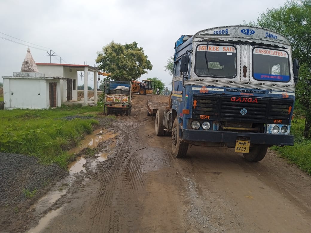 चंद्रपूर जिल्हितंर्गत चिमूर तालुक्यात मौजा रामपूर ते कोटगाव-डोमा-मुग्दाई रस्त्याच्या मजबूतीकरणाचे काम सुरू आहे.या रस्त्याच्या कामासाठी ट्रक व हायवा मध्ये ओव्हर लोड मटेरियल भरुन मौजा जांभुळघाट ते मौजा कोटगाव या रस्त्याने वाहतूक केली जात आहे.