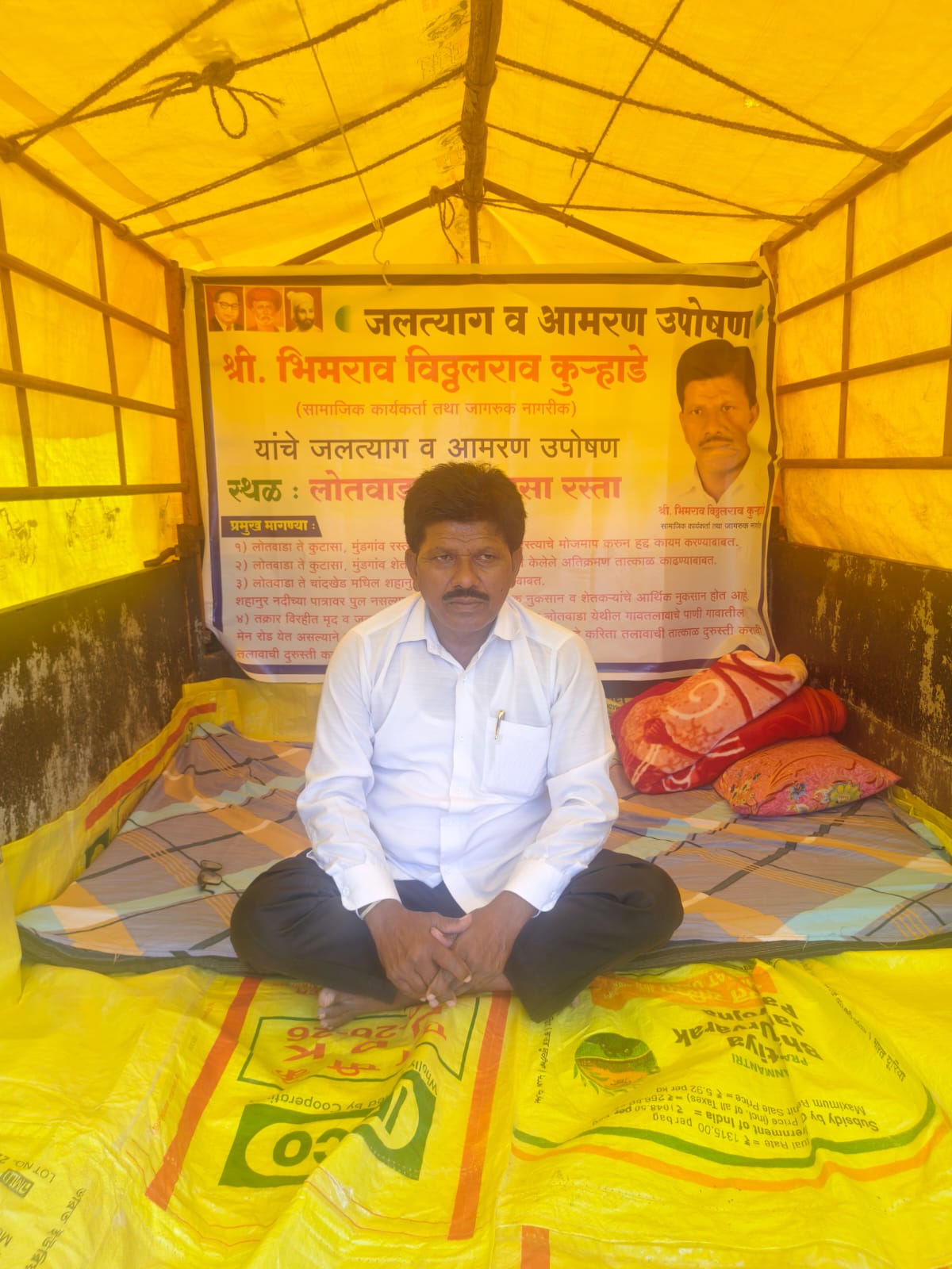 15 सप्टेंबरपर्यंत शासनाने कुठली कारवाई केली नसल्याने आज (दि. 16) रोजी भिमराव कुऱ्हाडे यांनी रस्त्यावर ट्रॅक्टरमध्ये जलत्याग व आमरण उपोषणाला सुरुवात केली आहे.