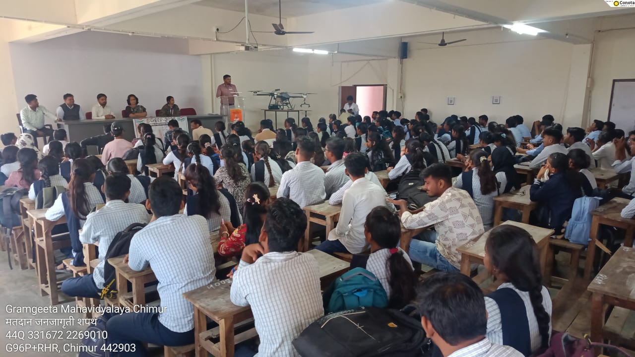 नगरपरिषद चिमूर सार्वत्रिक निवडणूक – 2025 च्या पार्श्वभूमीवर,मतदार जागरूकता आणि सहभाग कार्यक्रम (SVEEP) अंतर्गत,ग्रामगीता महाविद्यालय चिमूर आणि नगरपरिषद चिमूर यांच्या संयुक्त वतीने दिनांक 12 नोव्हेंबर 2025 ला मतदान जनजागृती करिता ग्रामगीता महाविद्यालयात ‘मतदान शपथ’ घेण्यात आली आणि विद्यार्थ्यांसाठी निबंध स्पर्धा,पोस्टर स्पर्धा तसेच चिमूरकरांना मतदानासाठी जागृत करण्याकरिता रिल्स बनवण्याची स्पर्धा आयोजित करण्यात आली.
