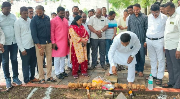 इंदापूर तालुका इंदापूर येथील शहरातील प्रभाग क्रमांक 5 मध्ये भार्गवराम तलाव येथे राज्यांचे उपमुख्यमंत्री तसेच नगरविकास मंत्री एकनाथराव शिंदे साहेब व जिल्हाध्यक्ष,महेशदादा पासलकर यांच्या माध्यमातून वैशिष्ट्यपुर्ण योजनेंतर्गत बगीचा सुशोभीकरण करण्यासाठी 1कोटी रुपये निधीची तरतुद करून मंजूर करण्यात आलेला असुन या कामांचे भुमीपूजन राष्ट्रवादी काँग्रेस पार्टीचे पुणे जिल्हाध्यक्ष प्रदिपदादा गारटकर, शिवसेना जिल्हाप्रमुख महिला आघाडीच्या सौ सिमा प्रशांत कल्याणकर, इंदापूर शिवसेना शहर प्रमुख अँड आनंद केकाण यांच्या या सर्वांच्या उपस्थितीत भूमिपूजन करण्यात आले.