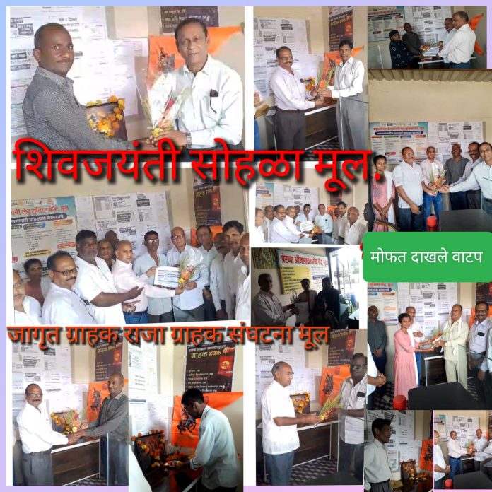 या कार्यक्रमाचे सूत्रसंचालन व आभारप्रदर्शन रमेश डांगरे सचिव यांनी उत्कृष्ट पद्धतीने केले.या शिवजयंती सोहळ्यात , जागृत ग्राहक राजा ग्राहक संघटना मूलचे पदाधिकारी ,दीपक देशपांडे अध्यक्ष,रमेश डांगरे सचिव, तुळशीराम बांगरे संघटक, मुक्तेश्वर खोब्रागडे, डॉ.आनंदराव कुळे, प्रमोद मशाखेत्री,संजय चिटमलवार, दिलीप चिताडे, डिबेश मशाखेत्री, किर्ती रामशेट्टीवार, मोतीलाल वाघमारे, नत्थु भुरसे आदी उपस्थित होते. याशिवाय लाभार्थी ग्राहक ही मोठ्या संख्येने उपस्थित होते.