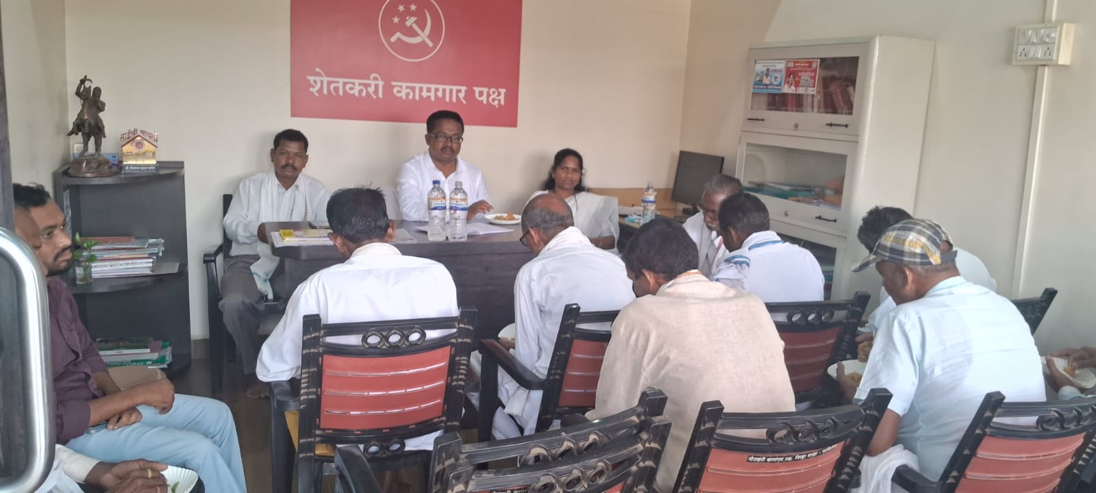 शेतकरी कामगार पक्षाच्या कार्यालयात गडचिरोली तालुक्यातील पदाधिकाऱ्यांची संघटन बांधणी आढावा बैठक आयोजित करण्यात आली होती. तालुक्यात काॅर्पोरेट कंपन्यांसाठी शासनाने एमआयडीसी घोषित करुन शेतकऱ्यांच्या जमिनी कवडीमोल भावाने लाटू नयेत यासाठी नवीन एमआयडीसी क्षेत्रासाठी ग्रामपंचायत – ग्रामसभांनी विरोधाचे ठराव करावेत, शेतकऱ्यांच्या शेत जमीन बळजबरीने भूसंपादन होण्यासाठी जबाबदार असलेल्या लोह खाणींविरोधातील संघर्षात तालुक्यातील जनतेला मोठ्या संख्येने सहभागी करणे, विधवा निराधार वयोवृद्धांची पेंशन योजनेत वाढ, अव्वाच्या सव्वा वीजबिल देणारे स्मार्ट मीटर रद्द व्हावे, कर्जमाफी आणि नवीन पीककर्जाची तातडीने अंमलबजावणी व शेतकऱ्यांना वेळेत आणि मुबलक बी – बियाणे, रासायनिक खते उपलब्ध करण्यात यावेत या मुद्द्यांवर कार्यकर्त्यांनी मोठ्या संख्येने तरुणांना शेतकरी कामगार पक्षाशी जोडण्याचे काम करावे, असेही या बैठकीत निर्णय घेण्यात आले.