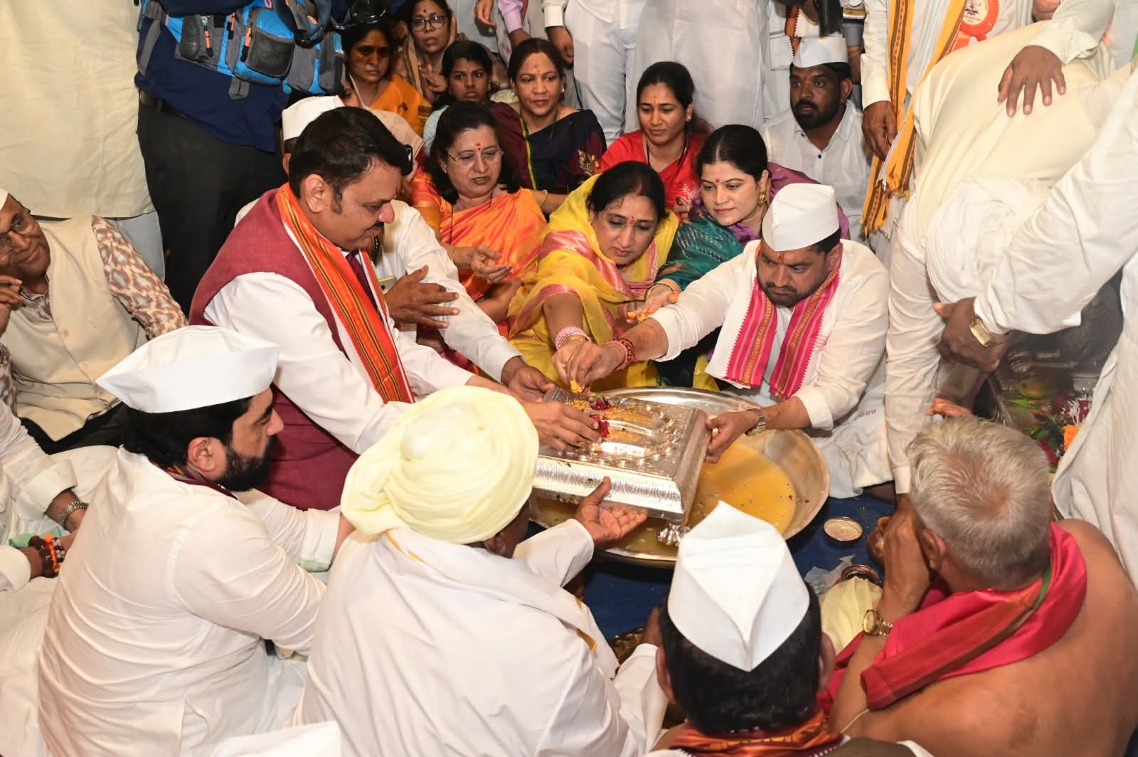 दर्शन व पूजेनंतर मुख्यमंत्री फडणवीस यांनी उपस्थिती वारकरी माऊलींना वंदन केले. मंदिर संस्थानच्यावतीने त्यांचा सत्कार करण्यात आला. यावेळी मुख्यमंत्र्यांनी संस्थानच्या विश्वस्तांशी चर्चा केली. महापुजेनंतर पालखीने इनामदार वाड्यातील मुक्कामाकडे प्रस्थान केले.