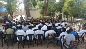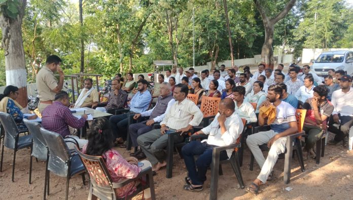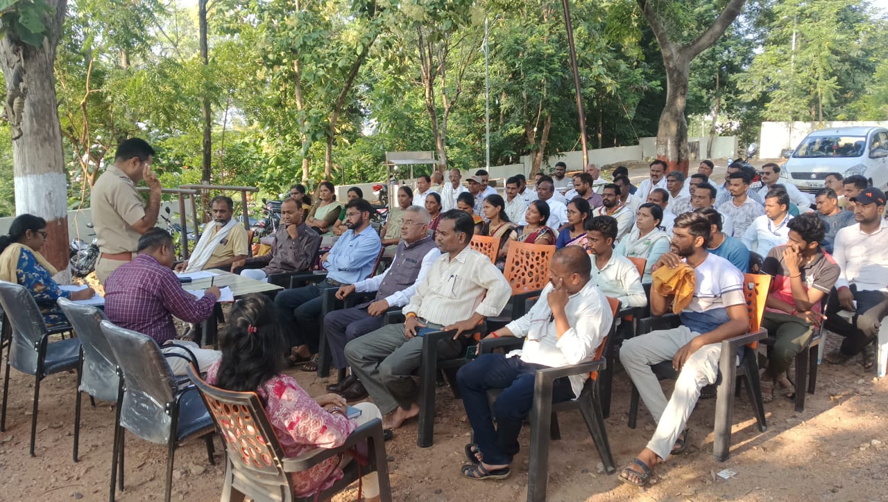 पोलिस स्टेशनच्या परिसरात शांतता समितीची बैठक पोलिस निरिक्षक थोरात यांची अध्यक्षेत संपन्न..
