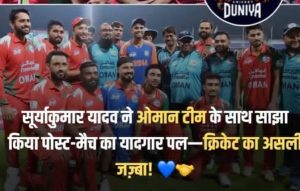 क्रिकेट हा फक्त एक खेळ नाही,तर दोन देशांना जोडणारा पूल आहे.जेव्हा सूर्यकुमार यादवने ओमानच्या खेळाडूंसोबत विनोद केला आणि फोटो काढला तेव्हा हे सिद्ध झाले की खेळ फक्त जिंकणे किंवा हरणे नाही.खेळाडूंमधील परस्पर आदर हा खेळाचा खरा सार आहे.