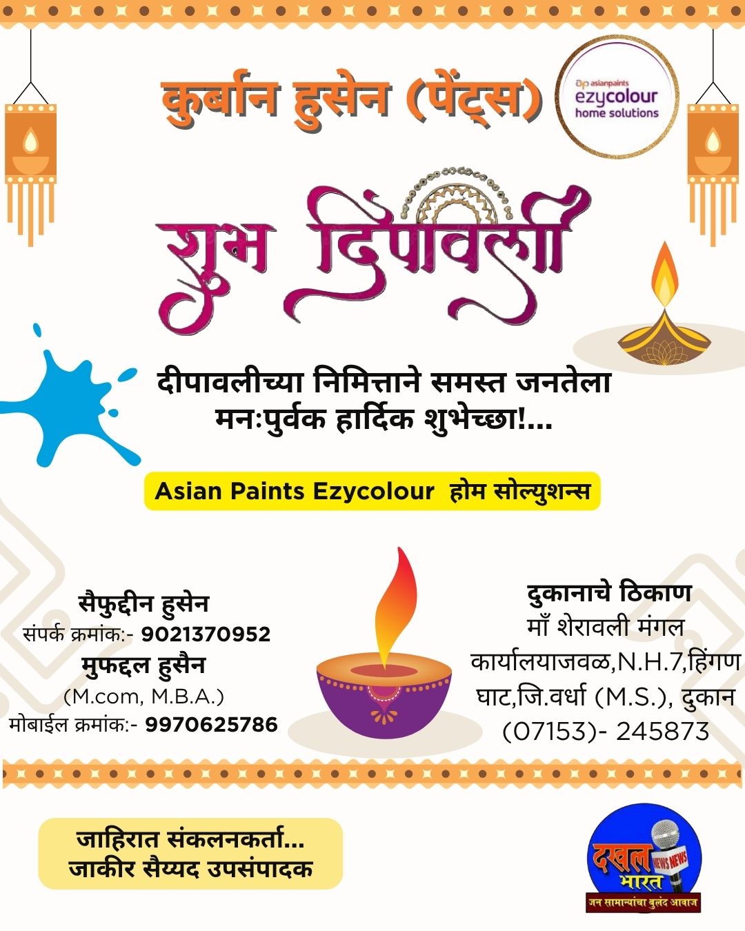 प्रिय ग्राहक,नागरिक,विद्यार्थी,सस्नेहीआप्तेष्ट,शेतकरी बांधव,स्नेही मित्रांच्या,”उज्ज्वल भविष्यासाठी,आ.कुरबान हुशेन यांच्याकडून अंतःकरण पुर्वक हृदयस्पर्शी खूप खूप सदिच्छा!