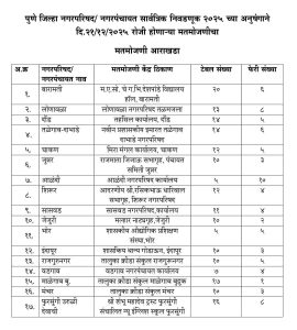पुणे : राज्य निवडणूक आयोगाच्या आदेशानुसार पुणे जिल्ह्यात १२ नगरपरिषदा व ३ नगरपंचायतीकरिता २ आणि २१ डिसेंबर २०२५ रोजी मतदानप्रक्रिया पार पडली; या निवडणुकीकरिता २१ डिसेंबर रोजी सकाळी १० वाजता मतमोजणी सुरु होणार आहे, याकरीता जिल्हा प्रशासन सुसज्ज आहे, अशी माहिती जिल्हाधिकारी तथा जिल्हा निवडणूक अधिकारी जितेंद्र डुडी यांनी दिली आहे.