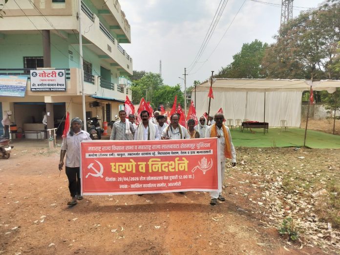 महाराष्ट्र राज्य किसान सभा व महाराष्ट्र राज्य लालबावटा शेतमजूर युनियन, तालुका आरमोरी मार्फत शेतकरी, शेतमजूर यांच्या विविध मागण्या साठी तहसील कार्यालय आरमोरी समोर दिनांक 20- 4-2026 ला धरणे आंदोलन करण्यात आले.