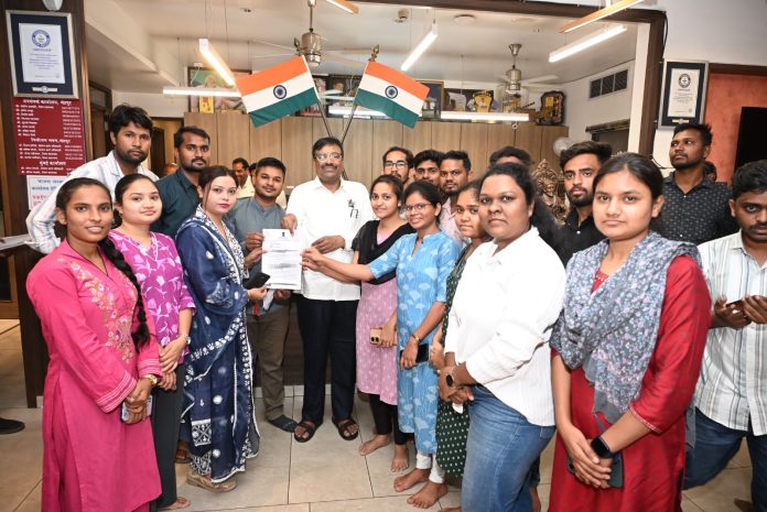 लघुलेखक पदभरती कायमस्वरूपी बंद करु नये या संदर्भात भाजपच्या माजी युवती प्रमुख प्रियंका चिताडे यांचे नेतृत्वात विद्यार्थी व विद्यार्थीनींनी एक लेखी निवेदन माजी वने व सांस्कृतिक मंत्री तथा बल्हारपूर विधानसभा क्षेत्राचे विद्यमान आमदार सुधीर मुनगंटीवार यांच्या कडे आज सोमवार दि.२० एप्रिलला सादर केले.