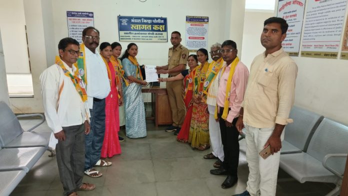 वंचित बहुजन महिला आघाडी च्या नेतृत्वात वंचित बहुजन आघाडीचे महिला जिल्हाध्यक्ष तनुजा नागदेवे यांच्या नेतृत्वात पोलीस स्टेशनला निवेदन देण्यात आले.