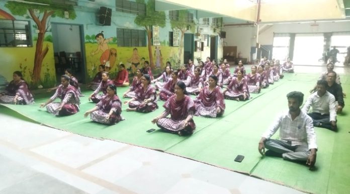 साकोली : नवजीवन कॉन्व्हेंट एंड इंग्लिश प्राय. स्कुल (सीबीएसई) साकोली मध्ये आंतरराष्ट्रीय योग दिनाचा कार्यक्रम शालेय प्रांगणात घेण्यात आला. याप्रसंगी अध्यक्ष प्राचार्या भारती व्यास, प्रमुख उपस्थिती शाळा व्यवस्थापक विनोद किरपान, प्रशासकीय अधिकारी सतिश गोटेफोडे, पर्यवेक्षिका वंदना घोडीचोर, तसेच योगप्रशिक्षक श्रीधर खराबे व वैष्णवी नंदेश्वर उपस्थित होते.