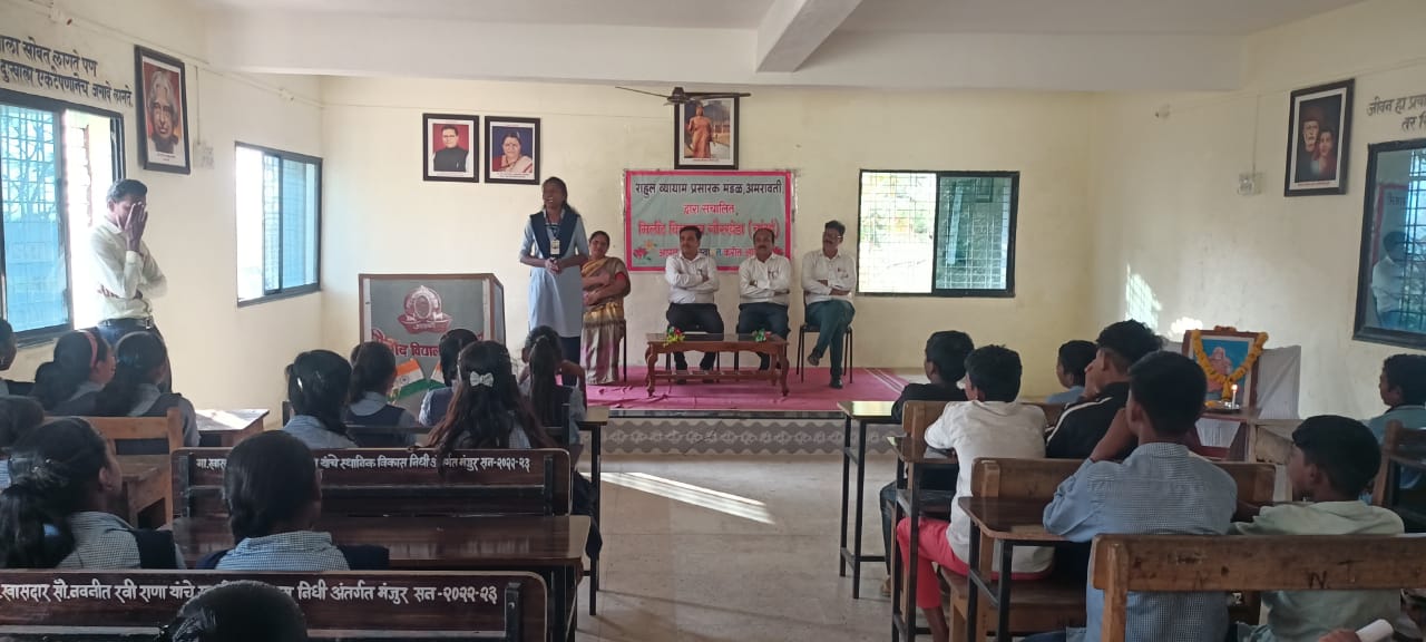 कार्यक्रमाचे अध्यक्षस्थानी विद्यालयाचे मुख्याध्यापक ए बी वानखडे हे होते,तर प्रमुख पाहुणे म्हणून विद्यालयाचे ज्येष्ठ शिक्षक दिपक कावरे ,प्रशांत वानखडे, कु.मनिषा गावंडे,वासुदेव भांडे,चित्रा राऊत हे उपस्थित होते.