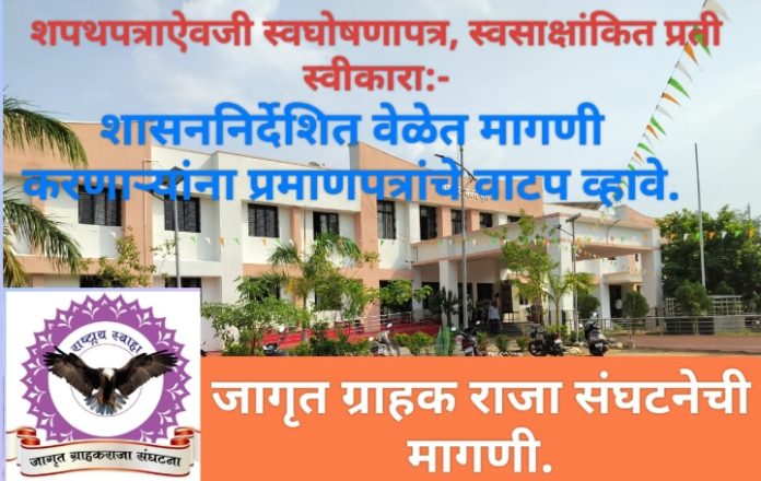 कोणत्याही प्रमाणपत्रांचे वाटप हे ठराविक कालमर्यादेतच झाले पाहिजे,नाहक ग्राहक, व नागरिकांना वारंवार येरझाऱ्या माराव्या लागू नये यासाठी प्राधान्याने लक्ष देण्याची आवश्यकता आहे,तसेच शासकीय कार्यालये,शाळा,नगरपरिषदा,मंडळे,महामंडळे,जिल्हा परिषद,ग्रामपंचायत आदी ठिकाणी शपथपत्र मागतात.
