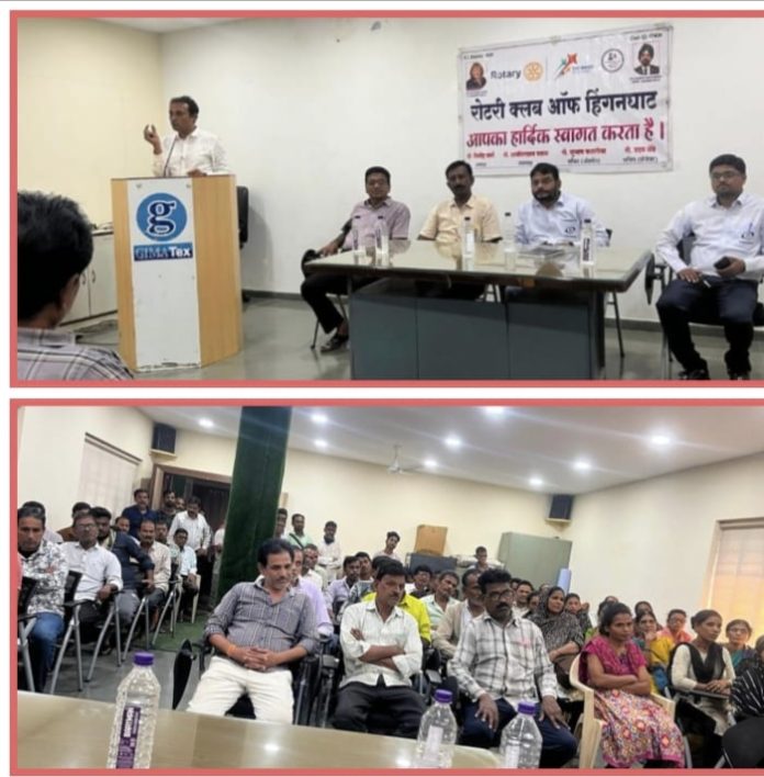 रोटरी क्लब हिंगणघाट का तंबाकू कर्करोग जन जागरूकता कार्यक्रम गीमा टेक्स कंपनी में आयोजित किया गया।
