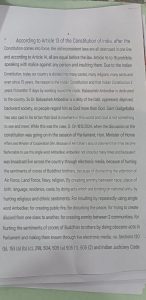 The statements have disturbed the working minds of the Air Force, Army, Navy, created enmity between religion, race, caste, language, residence, group, acted as a constraint on national unity, hurt religious sentiments, created universal enmity, peace has breached, created enmity between two communities, using vulgar single minded language in Parliament, all through electronic media.