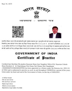 चिमूर :- तालुक्यातील डोमा परीसरातील चक – जाटेपार येशील शेतकरी, सर्व सामान्य माणसाला अनेक कार्यामध्ये व कामाला सदैव तत्पर असणारे सर्वाचे परीचीत ॲड.जयदेव दयाराम मून यांची नोटरी कायदा, १९५२ (५३) अंतर्गत दिनांक.२० फेब्रुवारी २०२५ ला नोटरी करीता व्यवसाय प्रमाणपत्र देऊन नियुक्ती करण्यात आली.