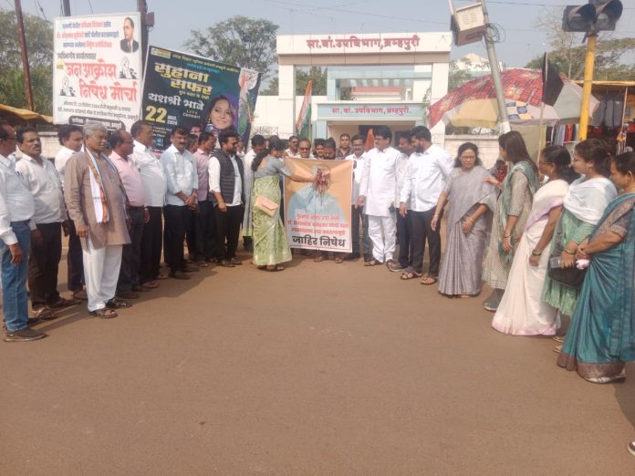अमित शाह यांच्या वक्तव्याचा निषेध करण्यासाठी ब्रम्हपूरी येथील छत्रपती शिवाजी महाराज चौकात काॅंग्रेस पक्षाच्या वतीने आंदोलन करण्यात आले आहे.
