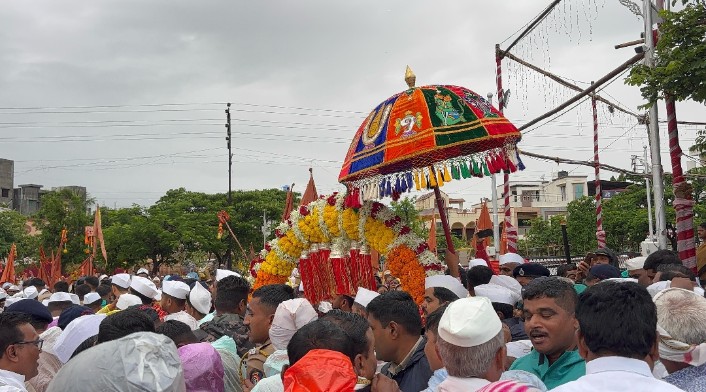 संत ज्ञानेश्वर माऊलींच्या जयघोषात आणि “येळकोट येळकोट जय मल्हार” च्या गजरात संपूर्ण परिसर भक्तिरसात न्हाऊन निघाला आहे. वारकरी मोठ्या संख्येने पालखीच्या स्वागतासाठी रस्त्यावर उभे असून, त्यांच्यात उत्साह ओसंडून वाहताना दिसत आहे.