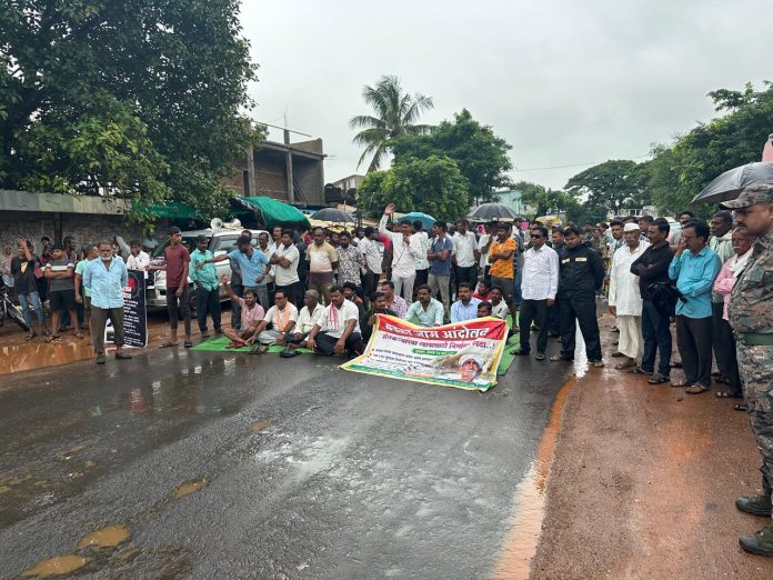शेतकऱ्यांचा सातबारा कोरा – कोरा करा, जन सुरक्षा विधेयक रद्द करा, 58 वर्षा वरील सर्व शेतकरी, शेतमजूर, कामगार यांना मासिक पाच हजार रुपये पेन्शन देण्यात यावी, शेतकऱ्यांना चोविस तास व मोफत विद्युत पुरवठा करा इत्यादी नारे देण्यात आले. नारे बाजी व चक्का जाम मुळे काही वेळ तनावाची परिस्थिती निर्माण झाली होती.आपल्या आंदोलनावर ठाम असलेल्या आंदोलनकर्त्यांना शेवटी पोलीसाना जबरदस्तीने उचलून गाडीने पोलिस स्टेशना आनावे लागते.