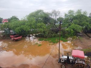 या पावसाच्या साचलेल्या पाण्यामुळे ठिकठिकाणी खड्डे तसेच खोलगट भाग निर्माण झाला असून रोड लगत नाल्या नसल्याने साचलेले पाणी हे गावाबाहेर निघत नाही. त्यामुळे दुकानांच्या आणि घरांच्या समोर साचलेल्या पाण्यामुळे सर्वत्र दुर्गंधी पसरली आहे. आणि घरांमध्ये डासांचे प्रमाण वाढले आहे. परंतु मागील वर्षी झालेल्या या रोड लगत साचलेल्या पाण्यामुळे व्यापाऱ्यांच्या दुकानाच्या समोर पाणी साचले असल्याने व्यवसाय करणे ही कठीण झाले आहे. या साचलेल्या पाण्यात मोकाट जनावरे बसत असल्याने सर्वत्र दुर्गंधी पसरली आहे.