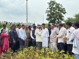 अशातच या क्षेत्रातील आमदार कीर्तीकुमार (बंटी) भांगडिया यांनी शेतकऱ्यांच्या पीक नुकसाना बाबत शासन स्तरावर पाठपुरावा केल्याने त्यांच्या आग्रहास्तव शेतकऱ्यांच्या व्यथा जाणून घेण्याकरिता आज दि.२४ सप्टेंबर २०२५ रोजी राज्याचे आदिवासी विकास विभाग मंत्री तथा चंद्रपूर जिल्हा पालकमंत्री अशोक उईके, वित्त व नियोजन, कृषी, मदत व पुनर्वसन, विधी व न्याय, कामगार राज्यमंत्री तथा गडचिरोली जिल्हा सहपालकमंत्री ॲड. आशिष जयस्वाल, चिमूर विधानसभा क्षेत्र आमदार कीर्तीकुमार (बंटी) भांगडिया,यांच्या प्रमुख उपस्थितीत चिमूर तालुक्यातील भिसी, वाहनगाव, बोथली, खाणगाव येथील शेतकऱ्यांच्या शेतात जाऊन पीक नुकसानीची पाहणी करण्यात आली.