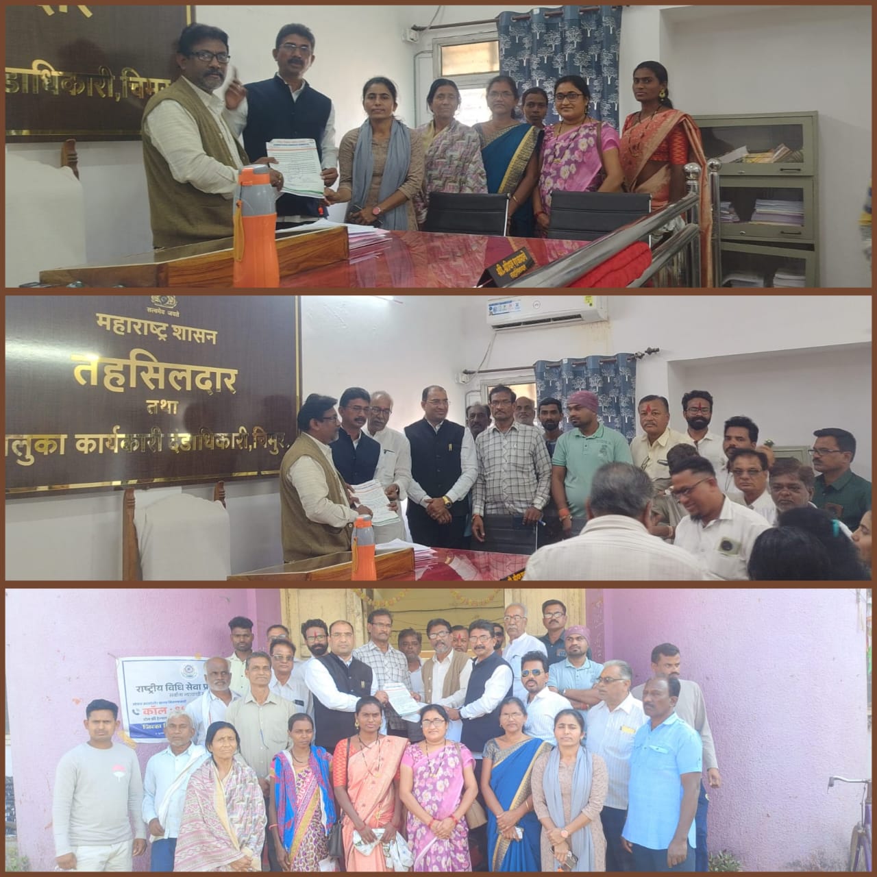निवडणूक आयोगाने पक्षपातीपणा न करता निष्पक्ष व पारदर्शक निवडणूका घेण्याचे आपले कर्तव्य पार पाडावे तसेच लोकशाहीचे रक्षण आणी मतदारांचा आदर सन्मान तसेच विश्वास कायम ठेवून विश्वासार्हता अबधित राहील याकडे निवडणूक आयोगाने लक्ष दयावे यासाठी चिमूर विधानसभा समन्व्यक डॉ. सतिशभाऊ वारजुकर यांच्या उपस्थिती मध्ये तालुका काँग्रेस कमिटी चिमूर यांच्या वतीने तहसीलदार साहेब चिमूर यांना निवेदन देण्यात आले.
