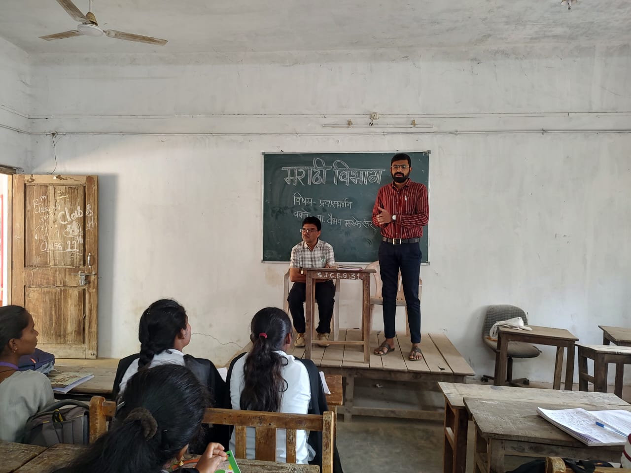 श्री साईबाबा ग्रामीण विकास संस्था गडचिरोली संचालित श्री.जीवनराव सिताराम पाटील मुनघाटे महाविद्यालय धानोरा येथे मराठी विभागातर्फे आयोजित अभ्यासगत व्याख्यान सत्रात प्रमुख वक्ते म्हणून वैभव मस्के सर तर अध्यक्ष म्हणून प्रा.डॉ.गणेश चुधरी मराठी विभाग प्रमुख उपस्थित होते.