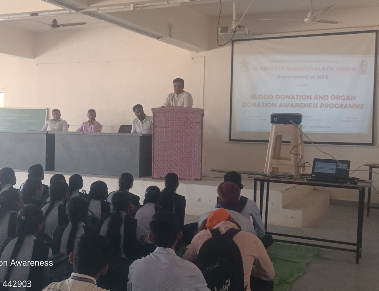 ग्रामगीता महाविद्यालय चिमूर येथील राष्ट्रीय सेवा योजना विभागाद्वारे दिनांक 25 फेब्रुवारी 2025 रोज मंगळवारला ‘रक्तदान व मरणोत्तर अवयव दान’ या विषयावर जनजागृती कार्यक्रम आयोजित करण्यात आले.
