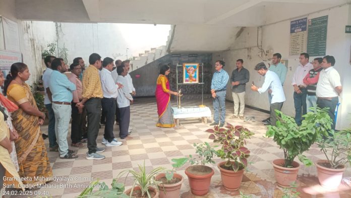 ग्रामगीता महाविद्यालय, चिमूर येथे दिनांक 24 फेब्रुवारी 2025 रोज सोमवारला संत गाडगे महाराज यांची 149 वी जयंती साजरी करण्यात आली.