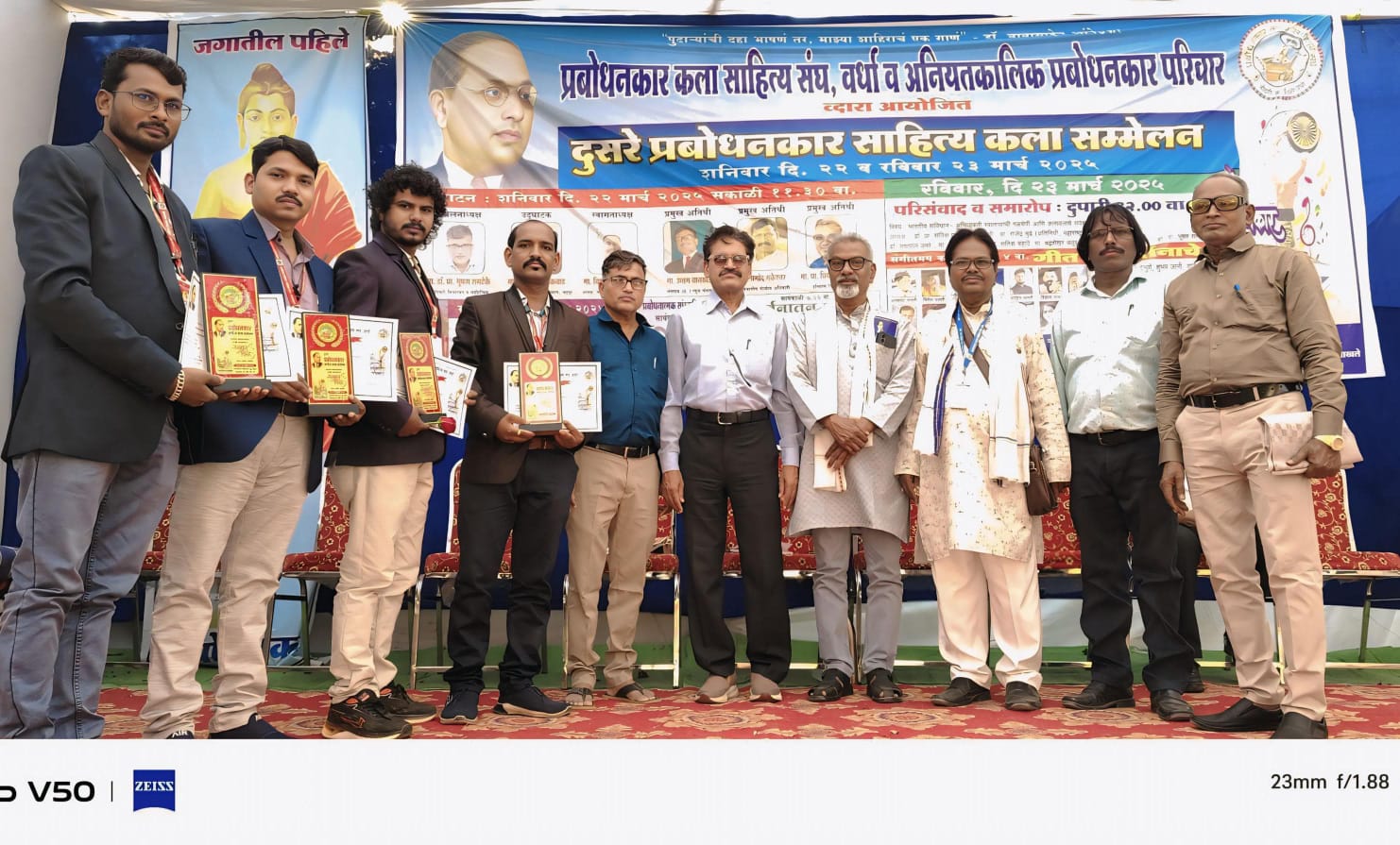 प्रबोधनकार कला साहित्य संघ वर्धा च्या वतीने आयोजित दुसरे प्रबोधनकार साहित्य कला संमेलनात प्रबोधनकार संघटनेचे भंडारा जिल्हा अध्यक्ष कवी, गायक ,प्रबोधनकार, संगीतकार भावेश कोटांगले यांना स्मृती चिन्ह आणि सन्मानपत्र देऊन सन्मानित केले.