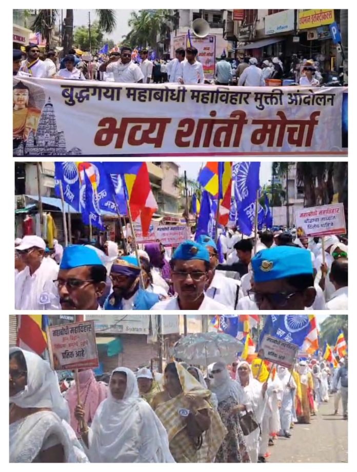 बिहार मधील बौद्धगया महाबोधी महाविहाराच्या मुक्ततेसाठी चंद्रपूर जिल्ह्यातील सर्व बौद्ध विहार आणि बौद्ध मंडळांच्या सहकार्याने, न्याय्य मागण्यांसाठी समता सैनिक दल, भारतीय बौद्ध महासभा आणि आंबेडकर चळवळीतील विविध राजकीय, सामाजिक आणि धार्मिक संघटनांच्या पुढाकाराने आज चंद्रपूर येथील डॉ. बाबासाहेब आंबेडकर चौकातून जिल्हाधिकारी कार्यालय पर्यंत भव्य शांती मोर्चा काढण्यात आला.