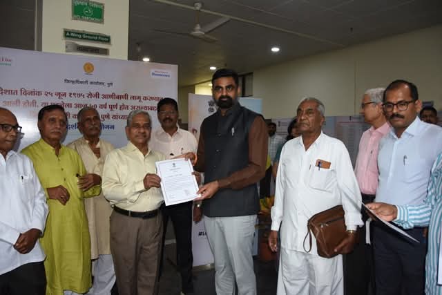 यावेळी आणीबाणी कालावधीत बंदिवास सोसलेल्या व्यक्तींना जिल्हाधिकाऱ्यांच्या हस्ते प्रातिनिधीक स्वरुपात सन्मानपत्र प्रदान करण्यात आले. या ज्येष्ठ व्यक्तींनी दिलेल्या ‘भारत माता की जय’, ‘वंदे मातरम’ घोषणांनी जिल्हाधिकारी कार्यालय परिसर दुमदुमला.