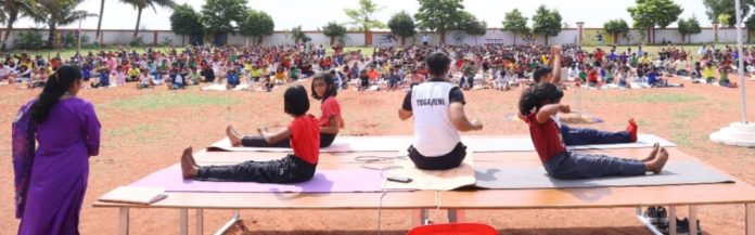 योगा शिक्षक श्री.नितीन बांगर यांनी विद्यार्थ्यांना मानवी जीवनात असणारी योगाची माहिती सांगितली विद्यार्थ्यांकडून सूर्यनमस्कार, प्राणायाम व विविध आसनांचे प्रकार करून घेतले.
