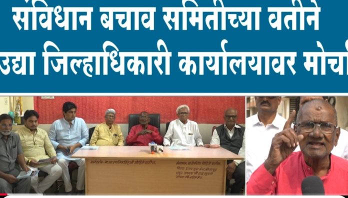 संविधान बचाव समितीच्या वतीने बुधवार दि. २६ नोव्हेंबर रोजी दुपारी १२ वाजता जिल्हाधिकारी कार्यालयावर महामोर्चा काढण्यात येणार आहे.