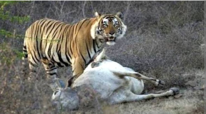 वृत्त असे आहे की,पांढरवाणी व नेरीच्या मध्ये २३ फेब्रुवारीच्या पहाटे शेतात बांधून असलेल्या गायीवर हल्ला करुन जागीच ठार केले.वाघाने गाय मारल्याची माहीती शेतकऱ्यांना होताच सदर माहीती वनविभागाला देण्यात आली. लगेच नेरी वनविभागाचे क्षेत्रसहाय्यक सी‌.एन.रासेकर,वनरक्षक संभाजी वळजे हे वनविभागाची चमु घेऊन घटनास्थळी पोहचले व घटनेचा पंचनामा केला.