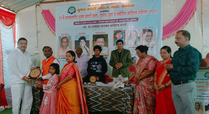 पारशिवनी :– नेहरू युवा मंडळ,मुर्तिजापूर आणि तरुणाई फाऊंडेशन कुटासा (अकोला) यांच्या संयुक्त विद्यमाने दहावे राज्यस्तरीय शुभम मराठी बाल,कुमार,युवा,नवोदित साहित्य संमेलनात शेतकरी वाडा,कृषी पर्यटन केंद्र,बहादुरा ता.बाळापुर (अकोला) येथे जेष्ठ साहित्यकार संमेलनाध्यक्ष श्री.शिवलिंग काटेकर यांच्या अध्यक्षतेखाली घेण्यात आले.,