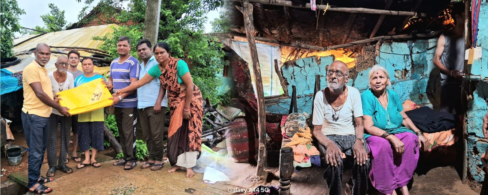त्यांना आलेले मित्र सहकारींच्या सहकार्याने मोठी ताडपत्री देण्यात आली. जेणेकरून अतिवृष्टीमुळे राहीलेले घरही कोसळून जाऊ नये. या गोरगरीब परीवारात वृद्ध दांपत्य मार्कंडपुरी नागपुरी वैकुंठी वय ८४, कलाबाई मार्कंडपुरी वैकुंठी ७९, मुलगी देवकाबाई वैकुंठी ४२, नातवंडे यशोदा वैकुंठी १८, पिंजल वैकुंठी १५ हे राहतात. अत्यंत जीर्ण व पडक्या अवस्थेत असलेली ही झोपडी केव्हाही कोसळू शकते. याप्रसंगी या सामाजिक कार्यकर्त्यांनी सांगितले की, तात्पुरती यांना इतर जागी आश्रय दिला जाईल व स्थानिक नगरपरिषदेकडे यांना सुद्धा आवास योजनेंतर्गत घरकुल देण्यात येईल असे सांगितले.