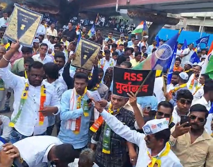 छत्रपती संभाजी नगर (औरंगाबाद) नगर येथे वंचित बहुजन आघाडीच्या व राजमाता जिजाऊ,छत्रपती शिवाजी महाराज,छत्रपती संभाजी महाराज,महात्मा ज्योतिबा फुले,क्रांतीज्योती सावित्रीबाई फुले,रानी अहिल्याबाई होळकर, छत्रपती राजर्षी शाहू महाराज, युगप्रवर्तक डॉ.बाबासाहेब आंबेडकरवादी नागरिकांच्या वतीने दिनांक २४ आक्टोंबर २०२५ रोज शुक्रवारला झालेल्या महामोर्चा अंतर्गत राष्ट्रीय स्वयंसेवक संघाने भारताचे संविधान स्विकारण्यास व मानन्यास नकार दिला,राष्ट्रीय ध्वज तिरंगा घेण्यास अमान्य केले आणि महाराष्ट्र सार्वजनिक न्यास कायद्याची प्रत स्वीकारण्यास नकार दिलाय,यामुळे ही संघटना भारत देश विरोधी असल्याचे स्पष्ट झाले आहे.