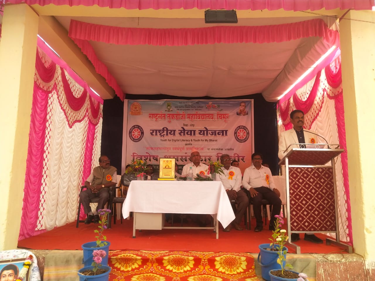 चिमूर :- राष्ट्रसंत तुकडोजी महाविद्यालय चिमूर येथील राष्ट्रीय सेवा योजना पथकाचे निवासी शिबिर गट ग्रामपंचायत शिरपूर येथे दिनांक२४ डिसें ते ३० डिसें २०२५ या कालावधीत आयोजीत करण्यात आले आहे. Digital literacy and my youa Bharat अंतर्गत लोकसहभागातून स्वयंपूर्ण ग्रामविकास या संकल्पनेवर आधारित आहे. दिनांक 25 डिसेंबर ला श्रमसंस्कार शिबिराचे उद्घाटन संपन्न झाले.