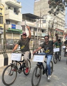 विश्वभूषण डाॅ.बाबा साहेब आंबेडकर चौक से वृक्ष मित्र मंडल द्वारा साइकिल रैली प्रारंभ कर सिव्हिल लाइन होते हुए,शहर के मुख्य मार्गो से भ्रमण कर वृक्ष लगाओ,हरियाली लाओ के नारे लगाते हुए साइकिल रैली वापस डाॅ.बाबासाहाब आंबेडकर चौक पहुंची।,जहां सभी ने भारत माता की जय के नारे लगाए।