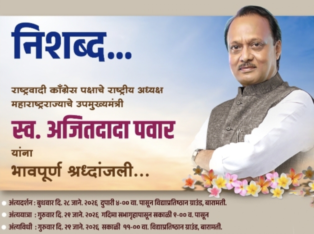 गुरुवार दिनांक 29/01/2026 सकाळी 11 वाजता उपमुख्यमंत्री अजित पवार यांचा विद्या प्रतिष्ठान येथे अंत्यविधी होणार आहे. मुख्यमंत्री,मंत्री,खासदार,आमदार,अनेक नेत्यांनी आणि केंद्रीय नेत्यांनी त्यांच्या निधनावर दु:ख व्यक्त केले आहे आणि अतिशय जड अंतःकरणाने श्रद्धांजली वाहिली आहे.