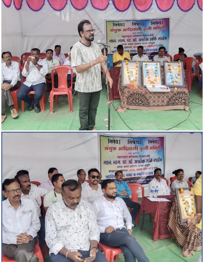 जून्नरचे आमदार शरद सोनवने यांनी अधिकारी व काही कार्यकर्त्यांसमक्ष महाराष्ट्राचे आदिवासी विकास मंत्री नामदार प्रा.डॉ.अशोक उईके यांच्या बाबतीत अगदी खालच्या स्तरावरुन अपमानास्पद वक्तव्य केल्यामुळे आज सोमवारला दुपारी आदिवासी बांधवांनी चंद्रपूर जिल्हाधिकारी कार्यालयासमोर एक दिवसीय धरणे आंदोलन करत आमदार सोनवणे यांचा जाहीर निषेध केला.