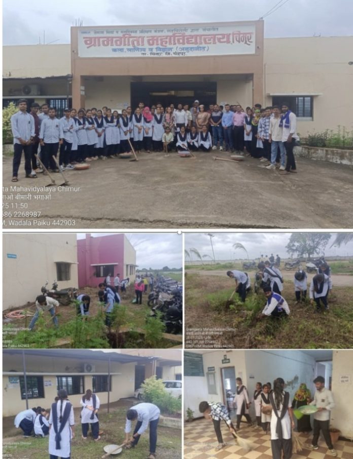 या निर्देशाला अनुसरून ग्रामगीता महाविद्यालय चिमूर येथे “सफाई अपनाओ बिमारी भगाओ” हा उपक्रम राबविण्यात येत आहे. या अभियानांतर्गत, मोहिमेचे सहा प्रमुख मंत्र, म्हणजेच स्वच्छ हात, स्वच्छ घरे, स्वच्छ परिसर, स्वच्छ शौचालये तथा स्वच्छ नाले आणि जलसाठे या विषयांवर महाविद्यालयात आणि परिसरातील नागरिकांमध्ये जनजागृती करण्यात येत आहे.